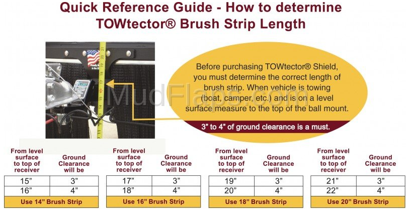 Mud flaps are great, but when they're flying in the breeze behind your Dually, RV or Motor-Home they can't protect your expensive towed boat, camper or car from rocks and road debris like the TowTector shield can! It provides the best and most coverage at highway speeds, because it spans the full width of your vehicle. Extra thick brush strips for double protectionsupport bar keeps brush strips in place